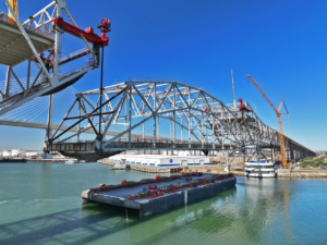 Mammoet removed the 2,300t truss of the US 181 Harbor Bridge in Corpus Christi for TxDOT and FlatironDragados. The structure was lowered 50 meters, loaded onto a barge, and moved using 108 axle lines of SPMT.