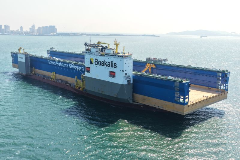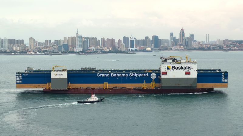 Qingdao, China – October 2025 — Dutch heavy marine transport specialist Boskalis has once again demonstrated the capabilities of its record-setting semi-submersible vessel, BOKA Vanguard, by loading a massive floating dry dock for Grand Bahama Shipyard onto its deck.