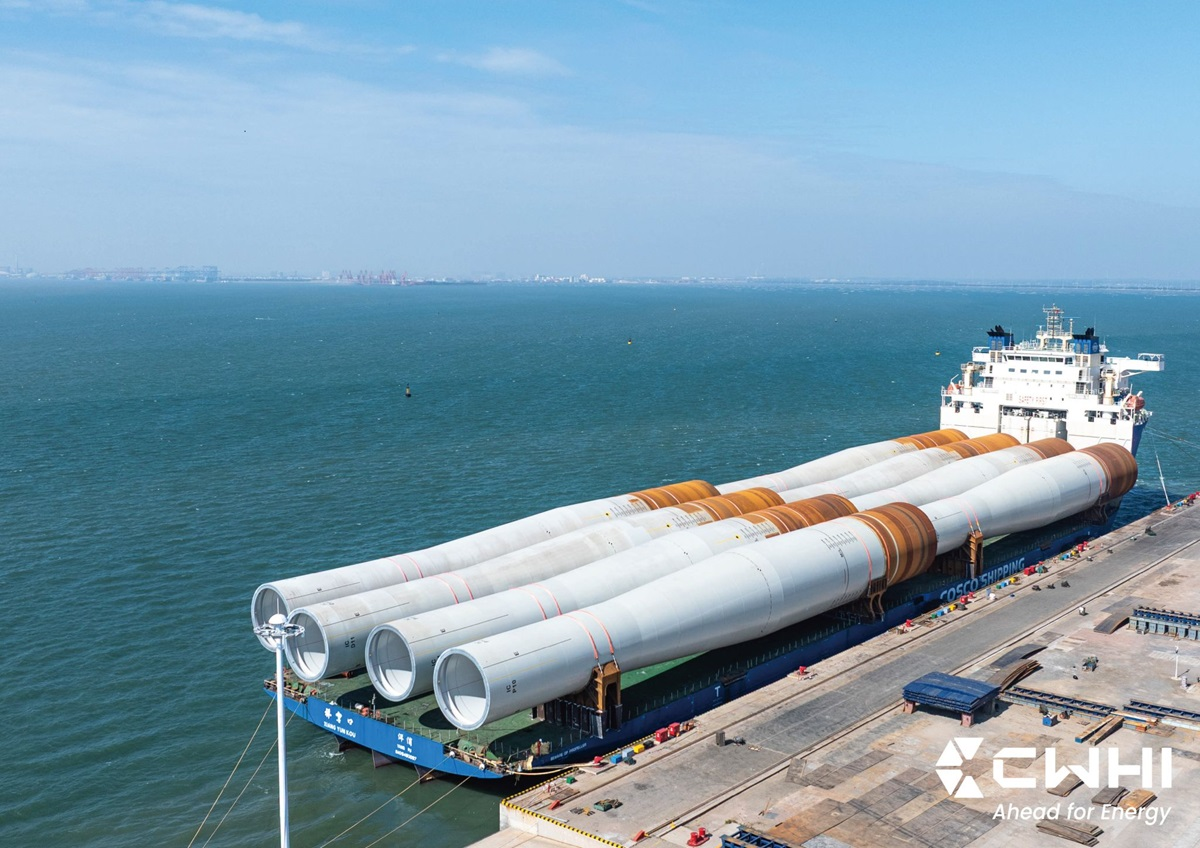 The XIANG YUNKOU sails under the Chinese flag and measures 216.7 m in length with a beam of 43 m. This shipment marks the third batch of monopiles fabricated by CWHI for the project. Together with two previous deliveries totaling 16 units, a total of 24 monopiles have now been dispatched. The first batch was received at Forth Ports Limited in Leith, with the second expected to arrive shortly.