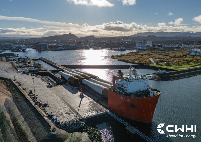 CNOOD-Wenchong Heavy Industries (CWHI) has announced the arrival of a second shipment of eight XXL monopiles for the Inch Cape Offshore Wind Farm. The components were transported aboard the ZHENHUA 33 and unloaded at the Port of Leith, following an initial delivery completed in October.