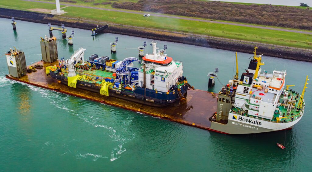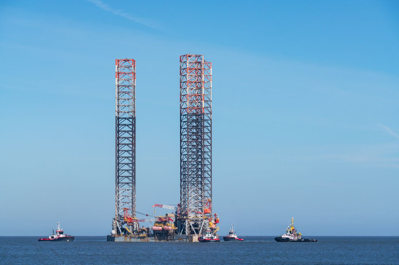 Port and terminal operations for the arrival were managed with tug support from Waterlines, Waterland and Waterstroom. The platform is a jack-up production unit, a type of offshore installation equipped with legs that can lift the hull above the water during operations.