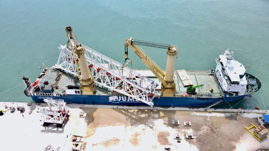 Jumbo Maritime’s HLV Fairmaster sailed from Mundra with two 707 t boilers and loaded a 1,122 t stinger in Karimun, Indonesia, supported by intricate 3D lift-clearance planning.