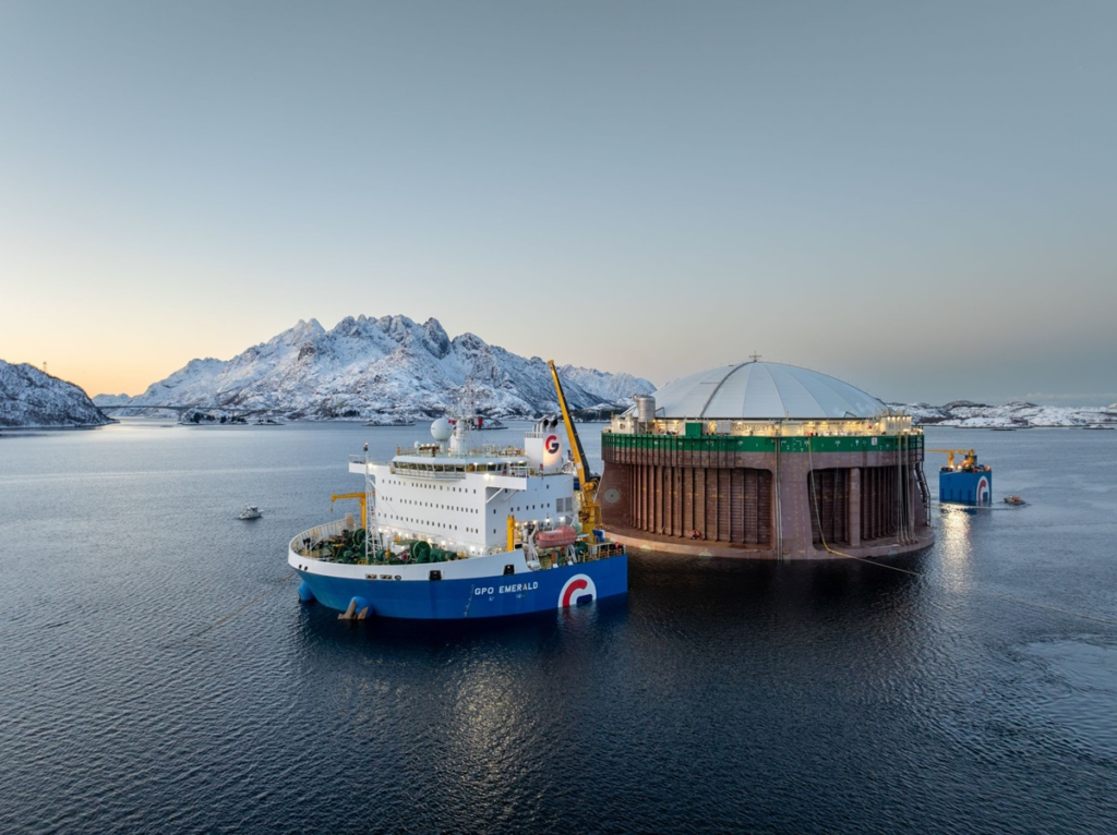 The semi-closed fish-pen unit Hydra, built for Norwegian salmon producer Nordlaks at Turkey’s Gemak Altınova Shipyard, has been loaded onto the semi-submersible heavy-lift vessel GPO EMERALD for transport to northern Norway. The loading operation took place on 22 October 2025.