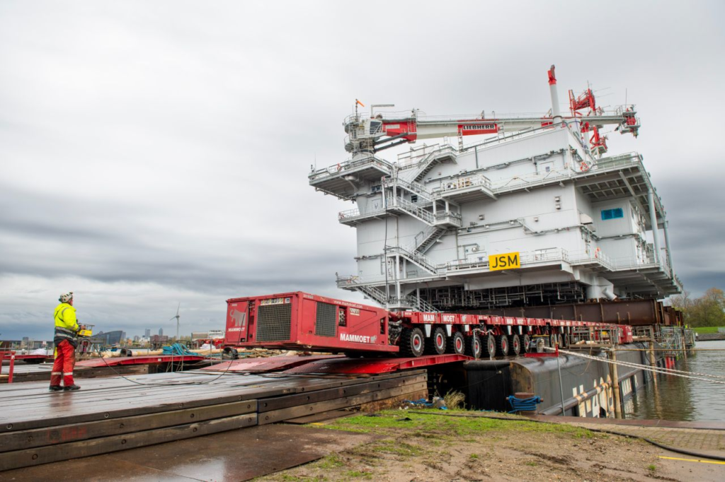 The 4,500-t topside, built at HSM’s Stormpolder yard, measures 48 m x 33 m x 17.5 m. A matching 4,500-t jacket, fabricated by Smulders at its Vlissingen facility, was prepared alongside it for barge transport to the Windanker site. These structures represent the first of three offshore substations that the HSI consortium is supplying to 50Hertz.