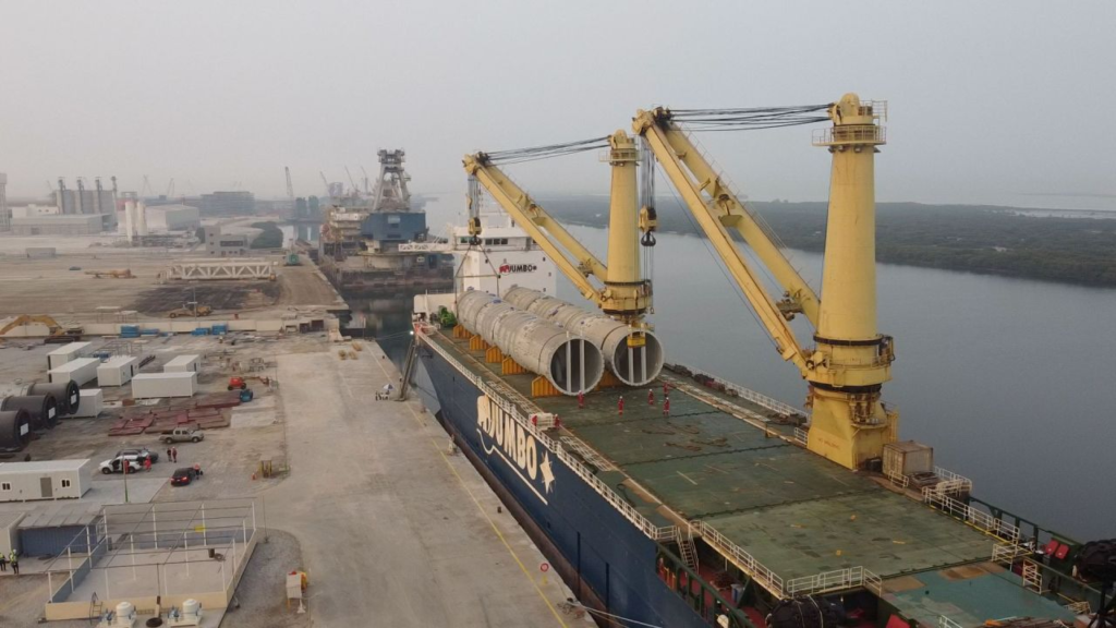 To support both transfer and marine transport, the consortium developed a specialized grillage to protect the structural integrity of substation components and optimize load distribution. In the final load-out stage, Mammoet moved the topside onto Heerema’s H-408 barge using 240 axle lines of SPMT, bringing the total weight to 5,100 t with the grillage installed.