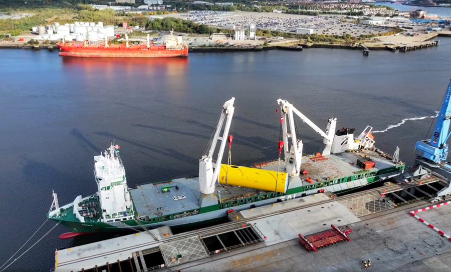 The heavy-lift vessel MV Trina, operated by SAL Heavy Lift, has transported a 435-tonne monopile replica from CSWIND PT’s fabrication yard in Portugal to the Port of Tyne in the United Kingdom. The structure will be used by Ørsted for onshore installation trials ahead of offshore construction for the Hornsea 3 Offshore Wind Farm.