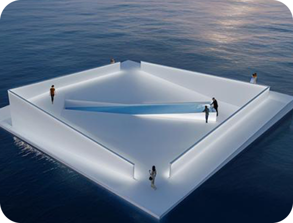 The pavilion was first shown at the Venice Architecture Biennale. Its design highlights clean edges, defined geometric forms, and a central pool incorporated into the platform. For the conference in Brazil, it serves as Italy’s national pavilion at the United Nations Climate Change Conference.