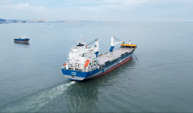 MV Svend is equipped with two 250-ton cranes that can operate in tandem for a total lifting capacity of 500 tons. The vessel also features improved fuel efficiency, high intake volume, and enhanced cargo carrying capability.