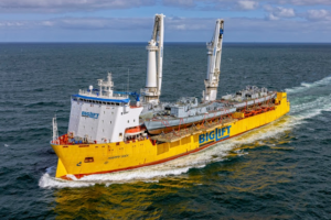BigLift’s MC-Class carrier Barentsz reached Norway’s Stord Port with the Hugin A Wellbay Module from Drydocks World Dubai, a key element for the Yggdrasil Hugin A topsides.