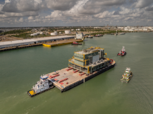 A record-sized LNG module has been transferred to a deck barge, showcasing deugro’s capability in handling complex energy project cargo.