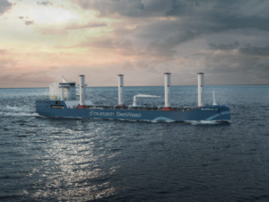 SeaWasp MR tanker simulations show 876 kW average propulsion contribution on a San Francisco–South Korea run, described as equal to about 597.2 tonnes of fuel saved per year.
