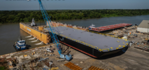 Berard successfully completed the transport and loading of a 2,160-ton, 300-foot barge in South Louisiana using 72 axle lines of SPMTs.