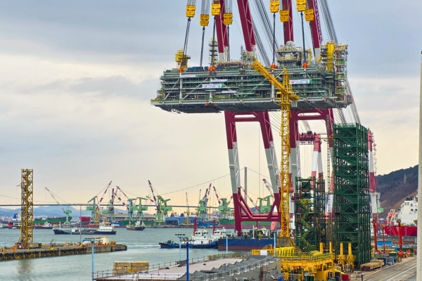 At HD Hyundai Heavy Industries in South Korea, construction of the floating production unit advanced, including the successful float-out of the hull following 14 months of block construction and assembly. During the visit, teams completed the safe installation of the first of three major modules, each weighing close to 6,000 tonnes. The company described the lift-and-mating activity as requiring meticulous planning and close coordination across multiple teams.