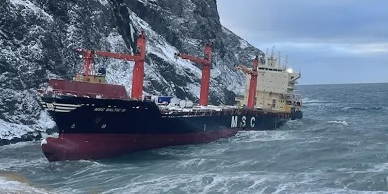 Severe North Atlantic weather has caused additional damage to the grounded container ship MSC Baltic III, stranded on rocks near Lark Harbor, Newfoundland since February 2025.